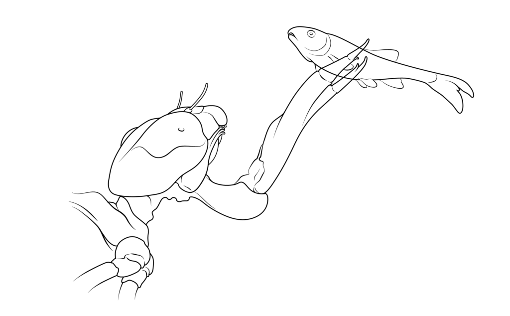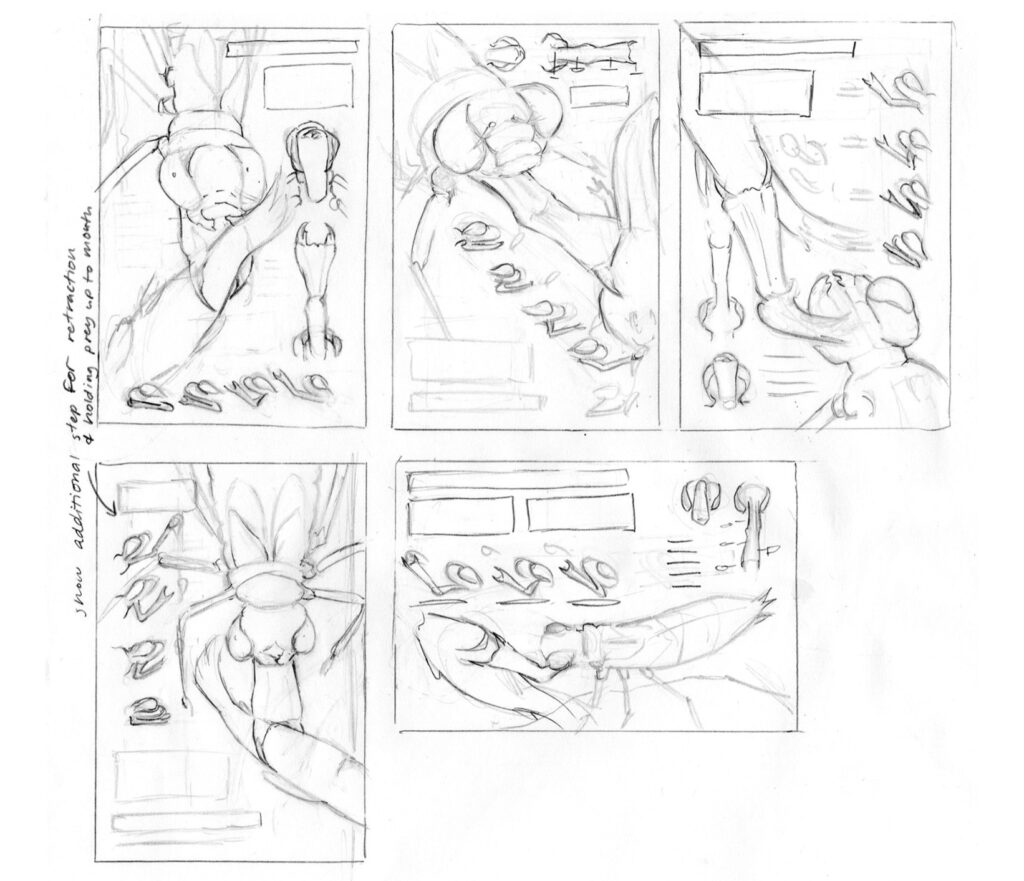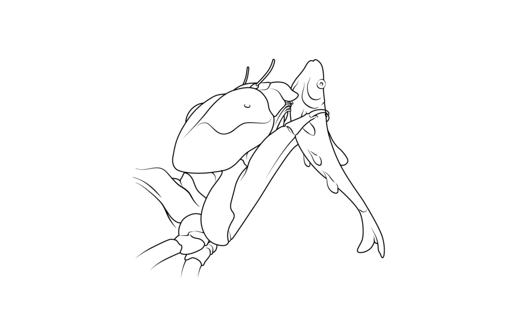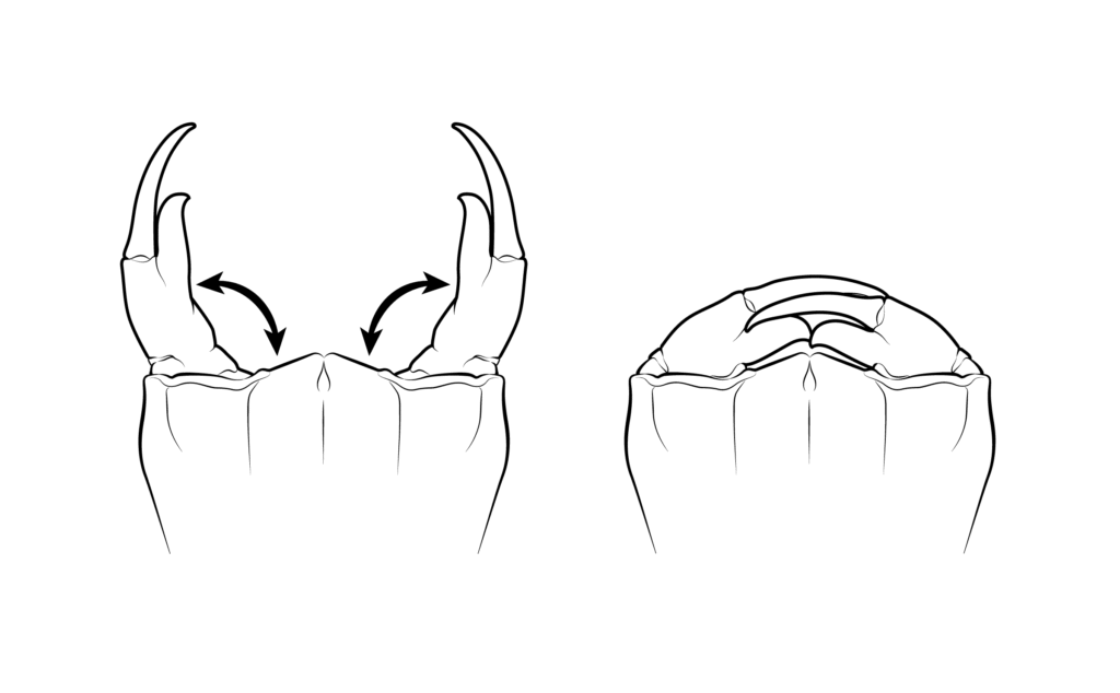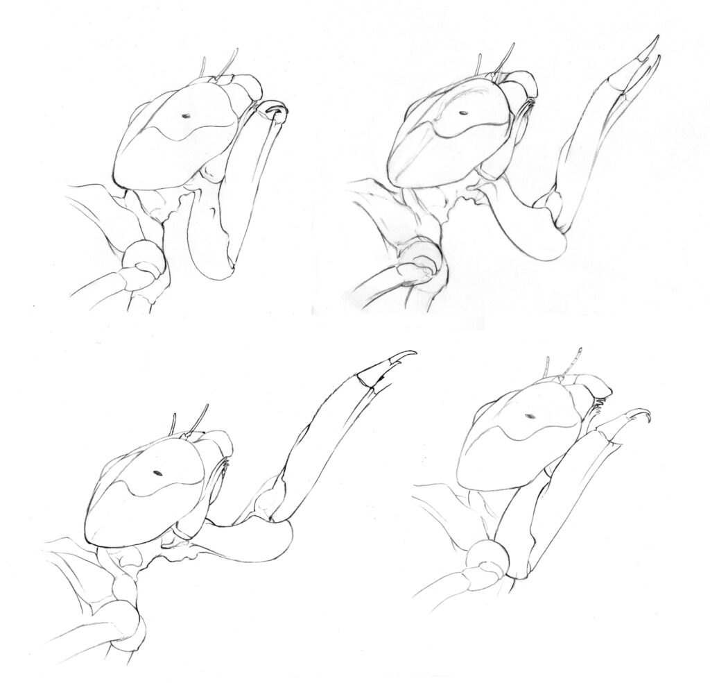The labium retracts, bringing captured prey back to the nymph’s mouth. The nymph uses its mandible to tear through and consume its prey.