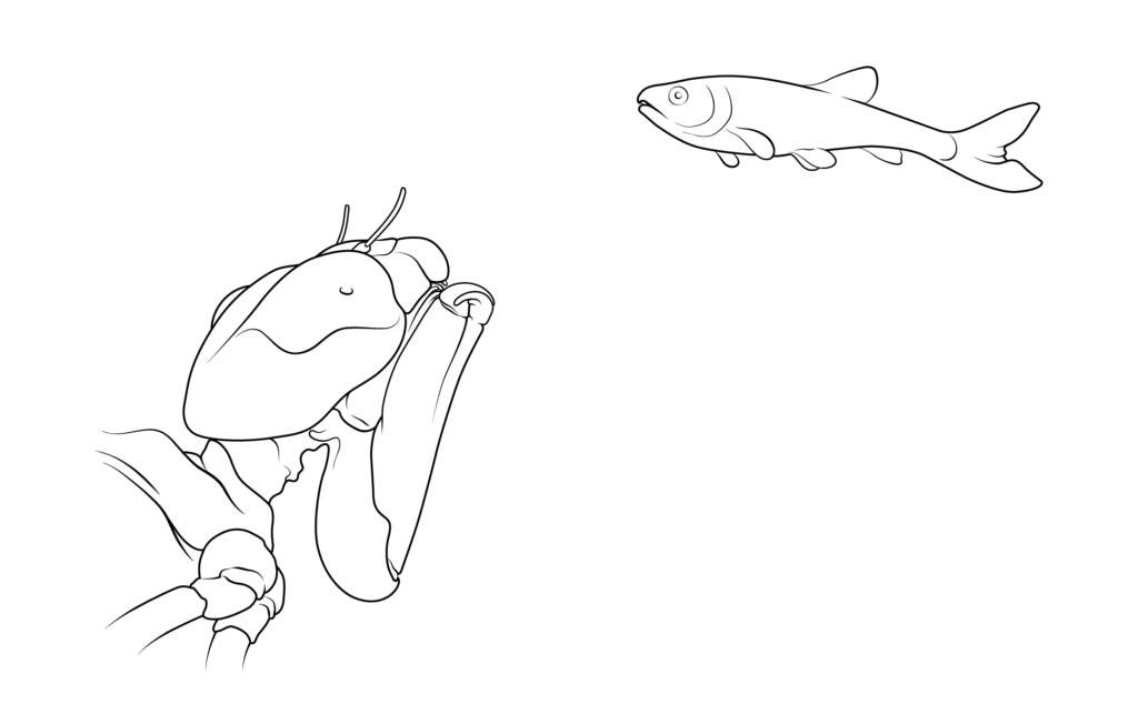 Through murky water, the nymph’s compound eyes are excellent at detecting and targeting potential prey